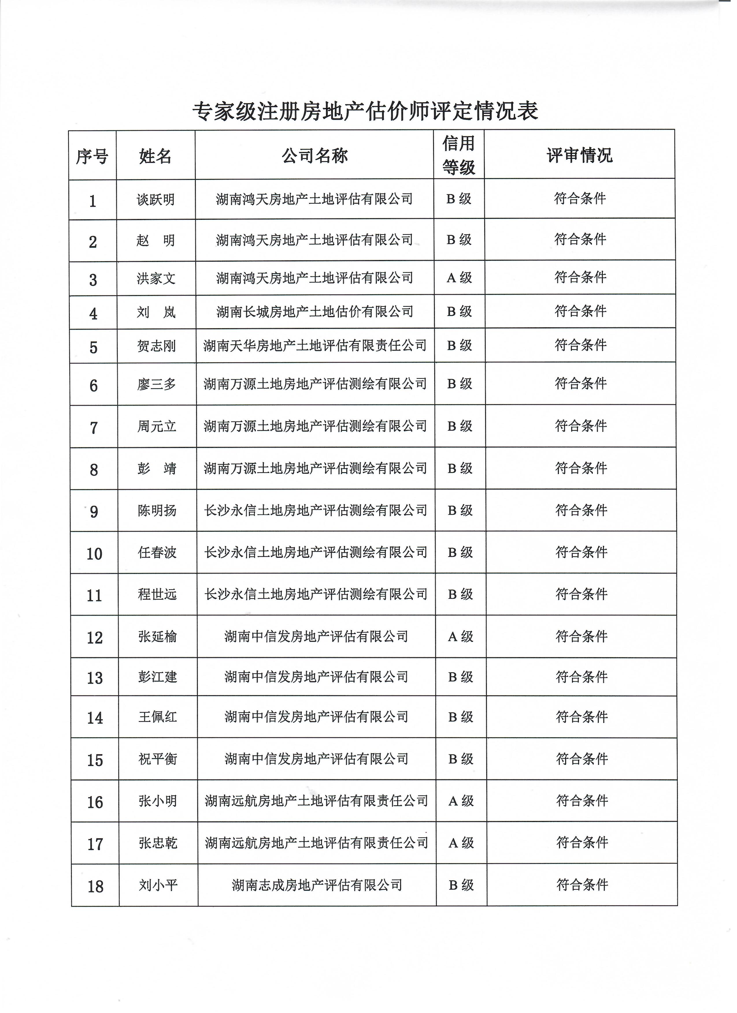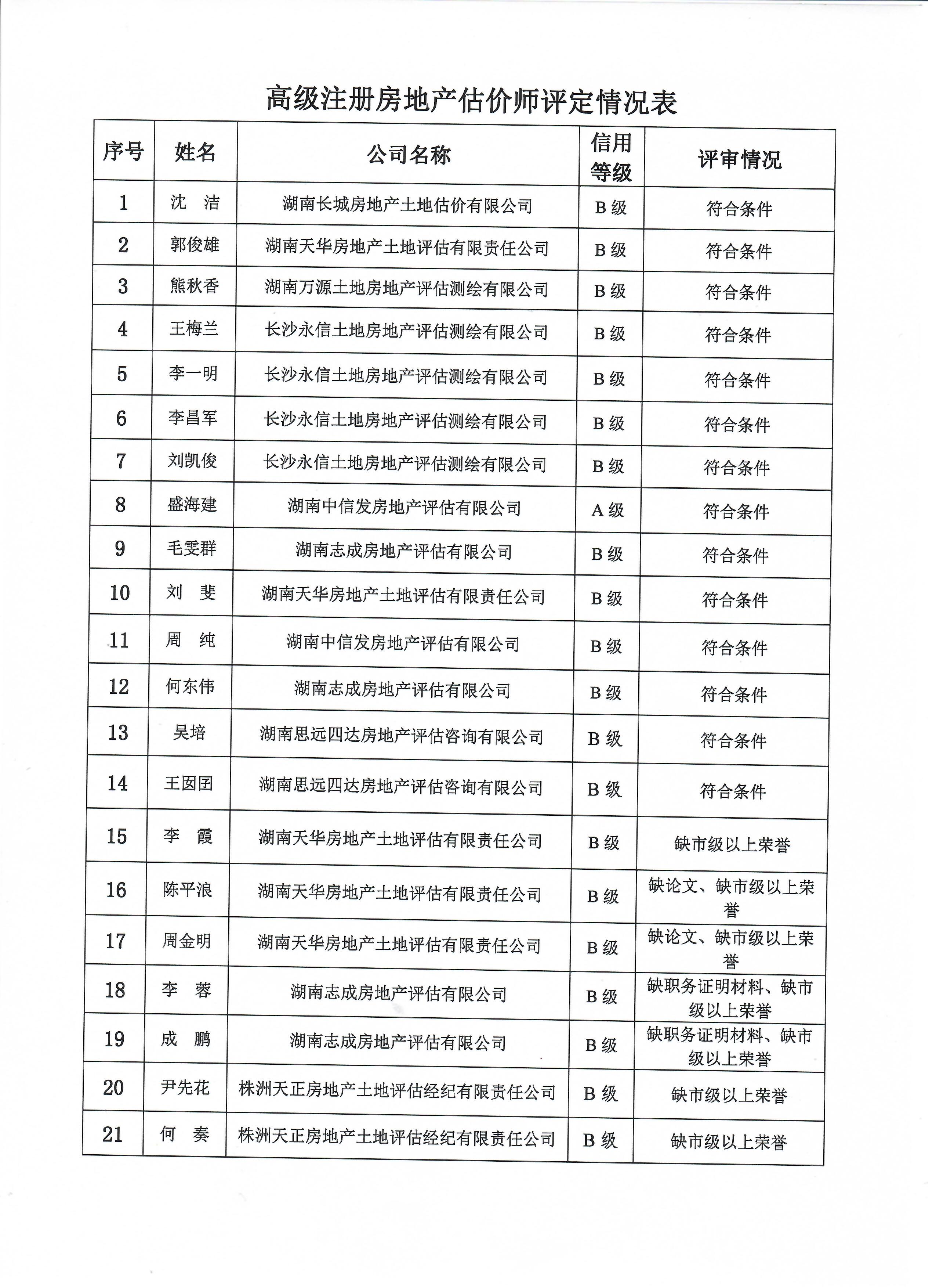 關(guān)于湖南省注冊房地產(chǎn)估價(jià)師執(zhí)業(yè)等級(jí)評(píng)定情況的公示