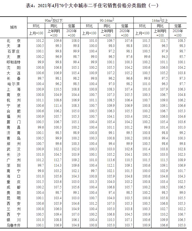 2021年4月份70個(gè)大中城市商品住宅銷售價(jià)格變動(dòng)情況