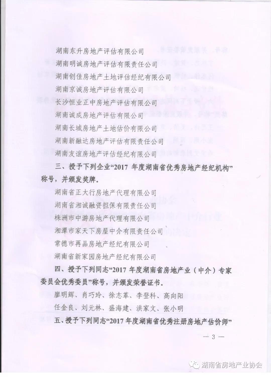 表彰2017年度湖南省房地產(chǎn)中介行業(yè)優(yōu)秀單位和優(yōu)秀個(gè)人
