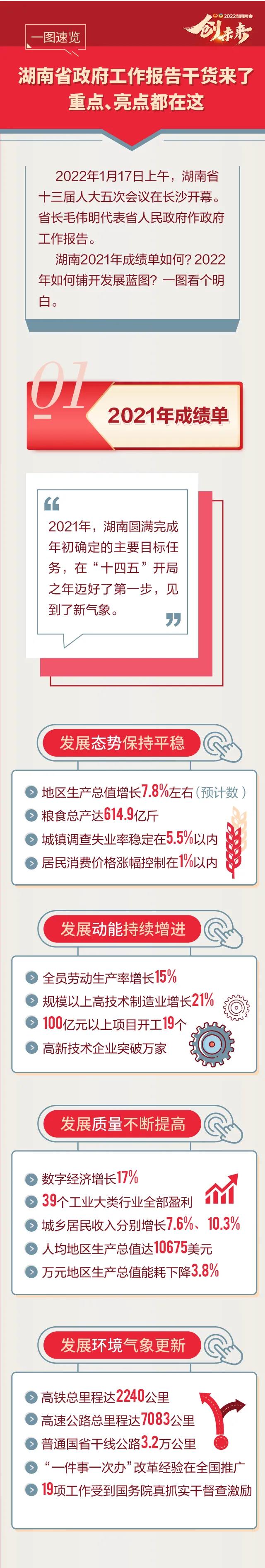 一圖速覽丨湖南省政府工作報告干貨來了 重點、亮點都在這