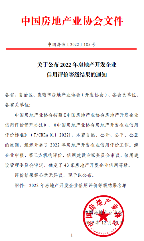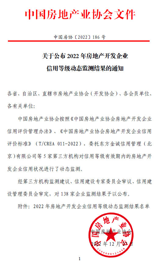 喜訊 | 省房協(xié)推薦的會員房企榮獲2022年全國信用評價AAA等級