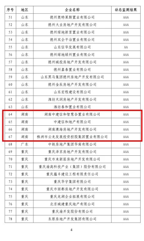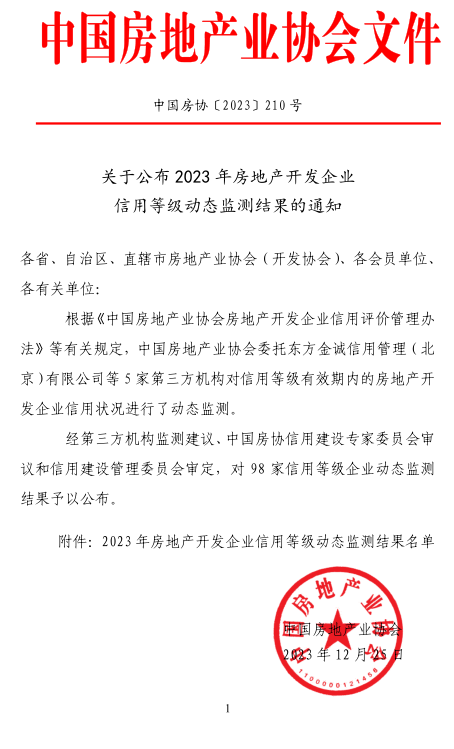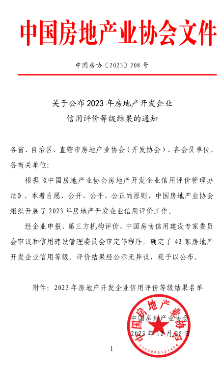 近日,中國房地產(chǎn)業(yè)協(xié)會(huì)公布了《2023年房地產(chǎn)開發(fā)企業(yè)信用評價(jià)等級結(jié)果》。2023年全國房地產(chǎn)開發(fā)企業(yè)獲得信用評價(jià)等級共有42家。在湖南省房地產(chǎn)業(yè)協(xié)會(huì)的組織和推薦下,株洲高科房地產(chǎn)開發(fā)有限公司獲得信用評價(jià)AAA等級。