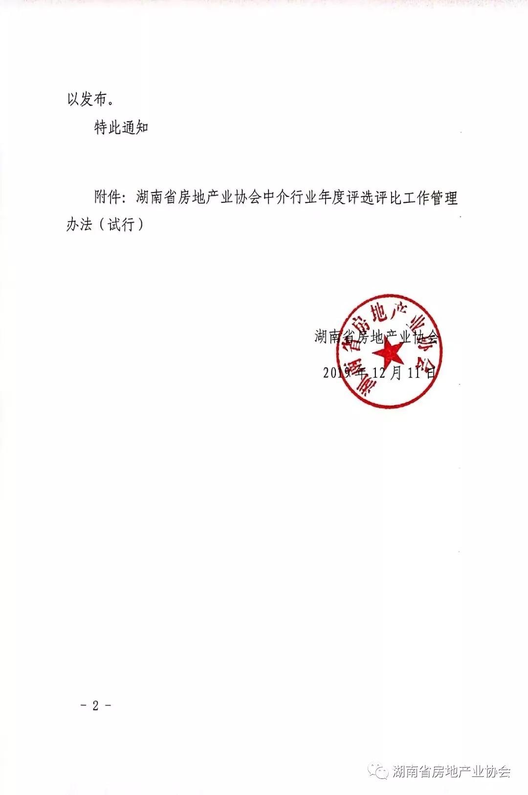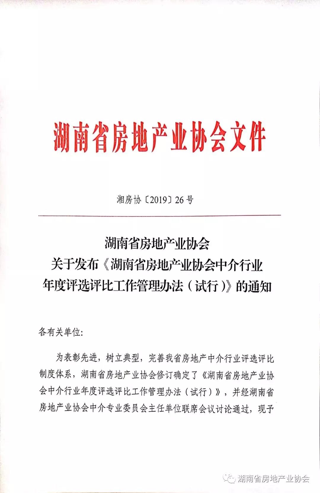 關于發布《湖南省房地產業協會中介行業 年度評選評比工作管理辦法(試行)》的通知