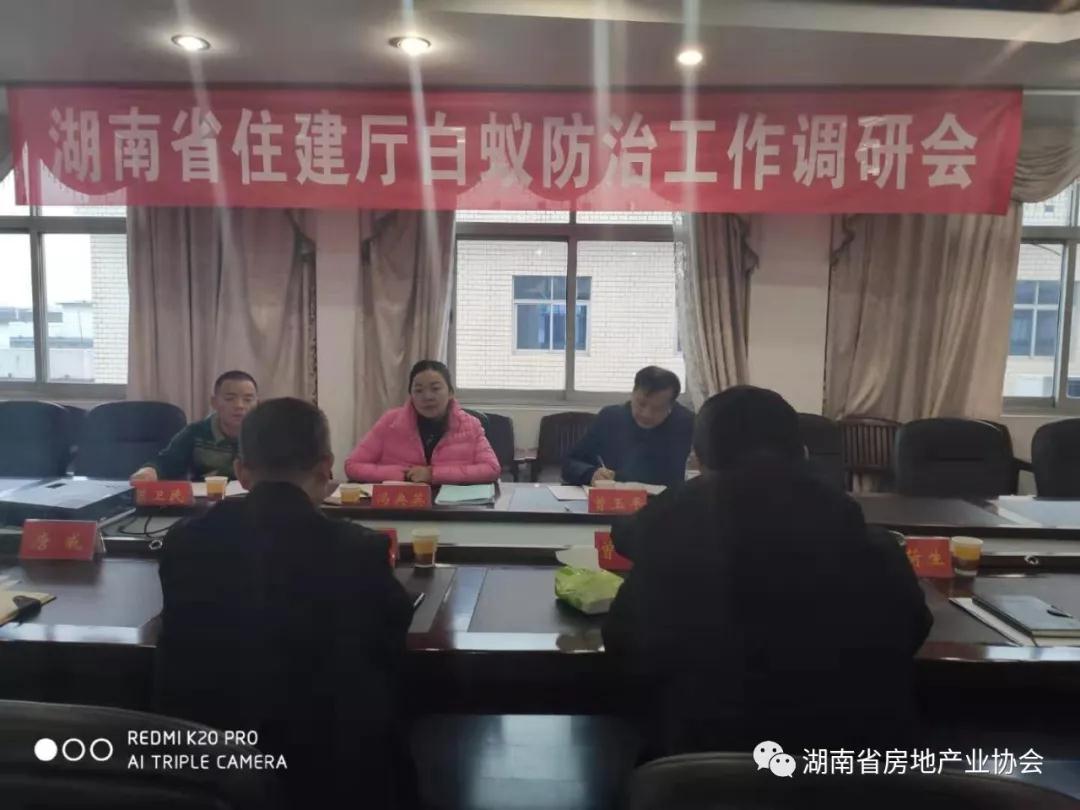 2019年12月31日與2020年1月7日,省住建廳房產處副處長馮典英、調研員曾玉平、省房協(xié)白蟻專業(yè)委秘書長陳衛(wèi)民一行來到衡陽、湘潭、長沙三地調研白蟻防治工作。三地白蟻防治分管領導與白蟻防治站主要負責人參與調研。