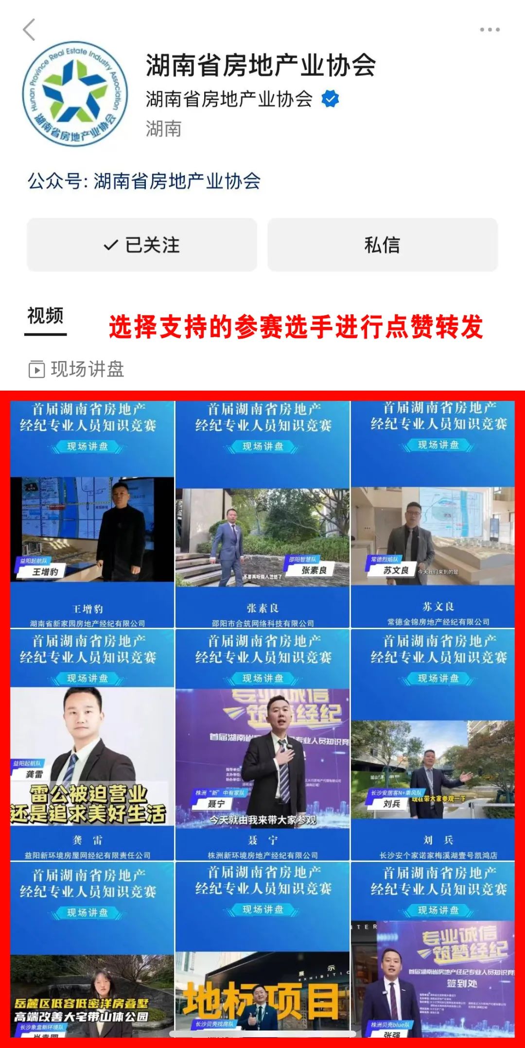 1、關注湖南省房地產(chǎn)業(yè)協(xié)會官方視頻號;