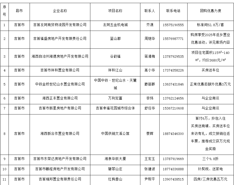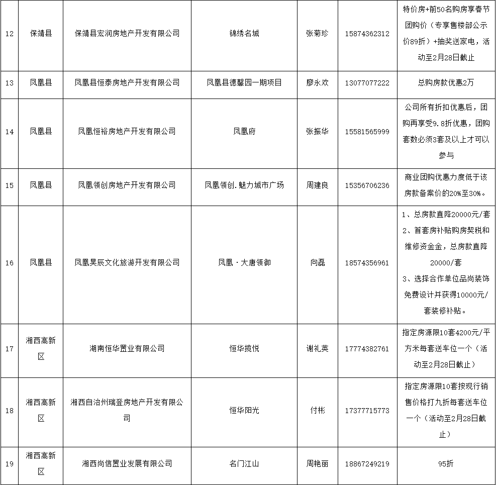 湘西州新春置業優惠活動項目清單表