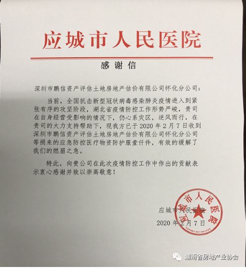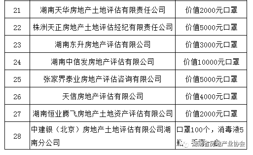 此外,部分評估機構同時自發向華中科技大學同濟醫院附屬協和醫院、應城市人民醫院、湖南慈善總會等單位捐贈了資金,并采購口罩、防護服等物資馳援武漢,充分體現了我省中介行業的大愛與擔當。