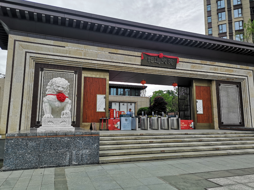 (“乾道大院”項目實景。作為乾道地產打造的首個院系著作,是邵陽首個新中式人文大盤,位于江北核心生態(tài)居住區(qū)域。)