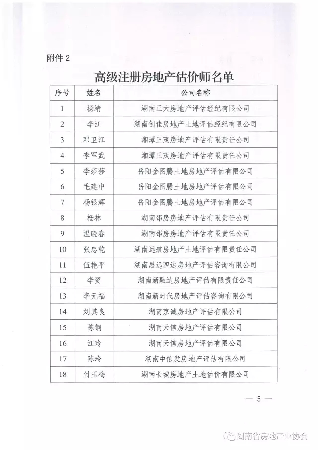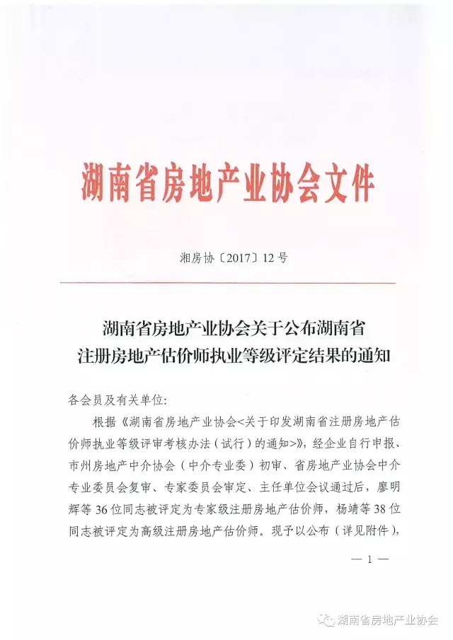 湖南省房地產業協會關于公布湖南省注冊房地產估價師執業等級評定結果的通知