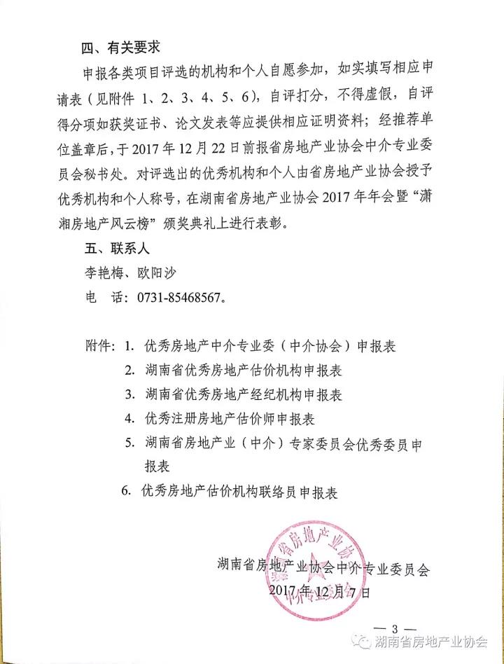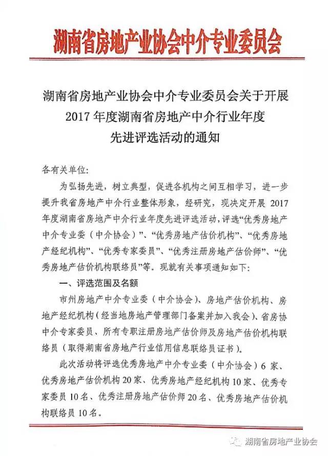 關(guān)于開展2017年度湖南省房地產(chǎn)中介行業(yè)年度先進(jìn)評(píng)選活動(dòng)的通知