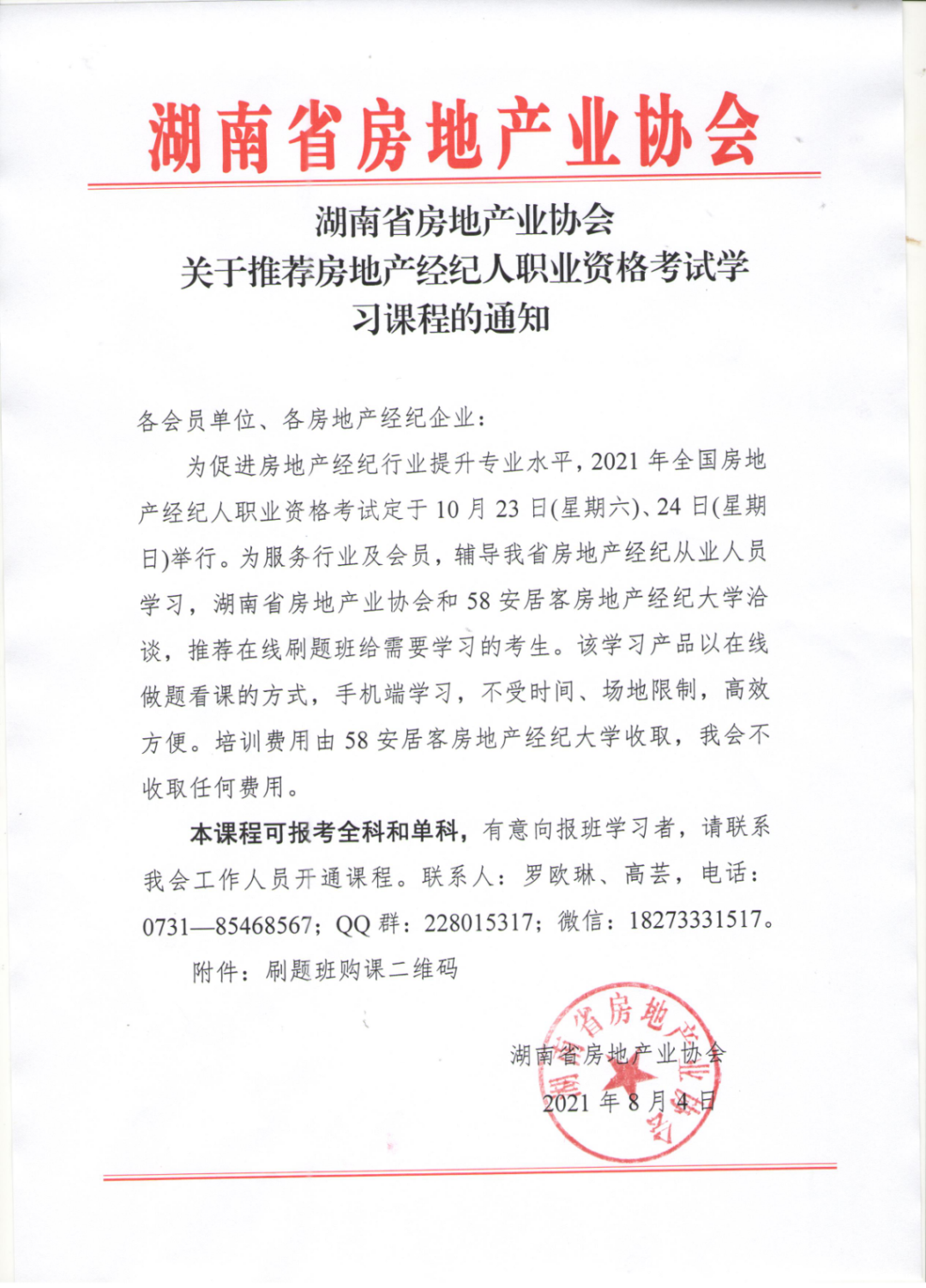 關于推薦房地產經紀人職業資格考試學習課程的通知