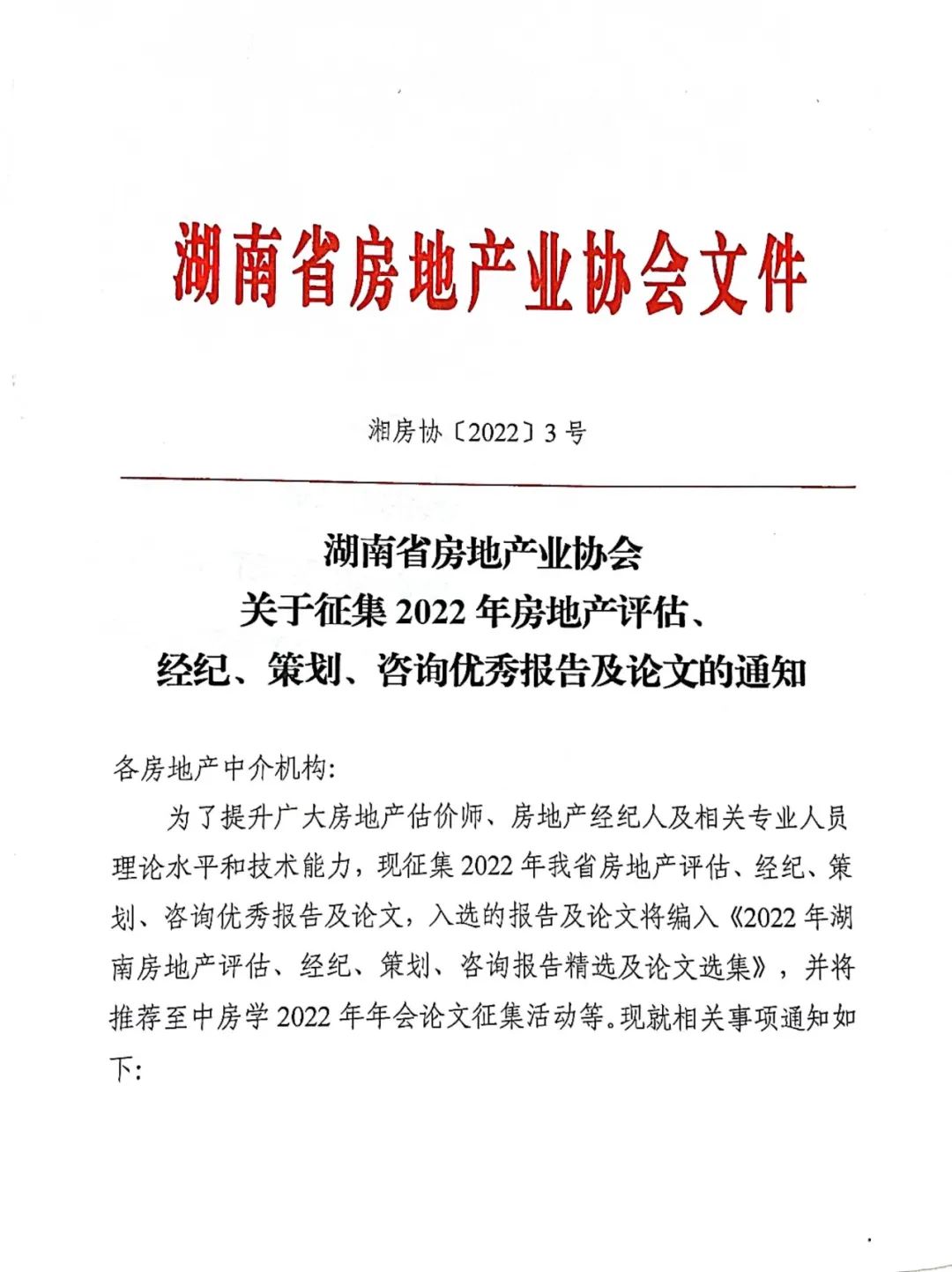 關于征集2022年房地產(chǎn)評估、經(jīng)紀、策劃、咨詢優(yōu)秀報告及論文的通知