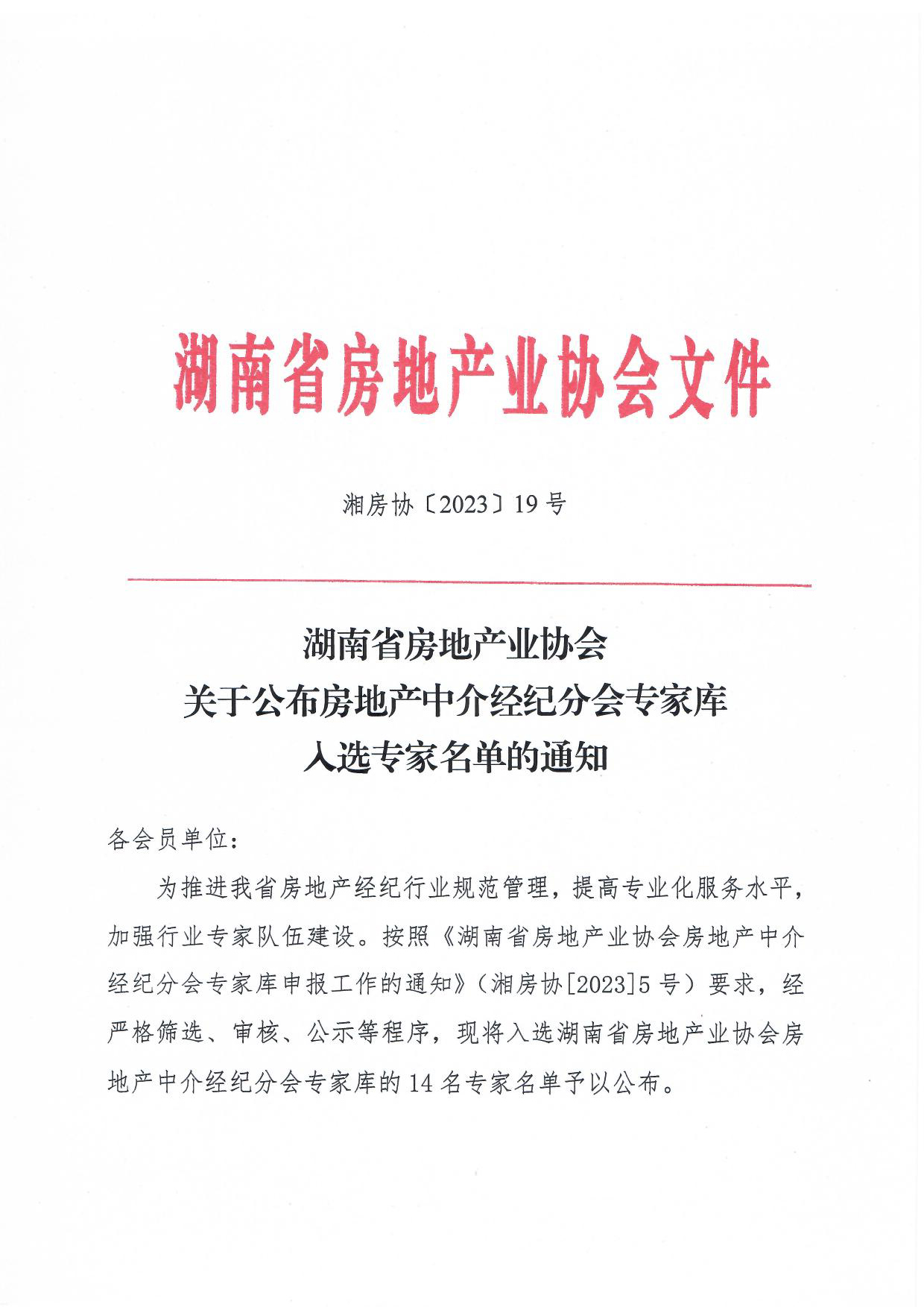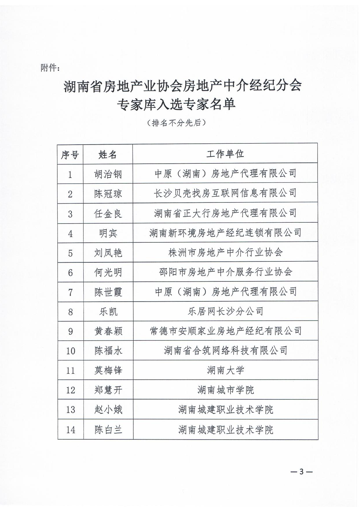 關于公布房地產中介經紀分會專家庫入選專家名單的通知