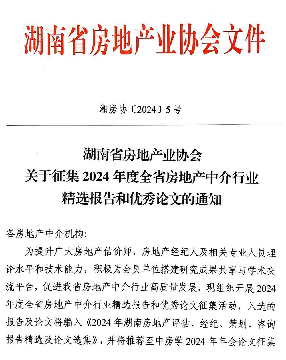 關于征集2024年度全省房地產中介行業精選報告和優秀論文的通知