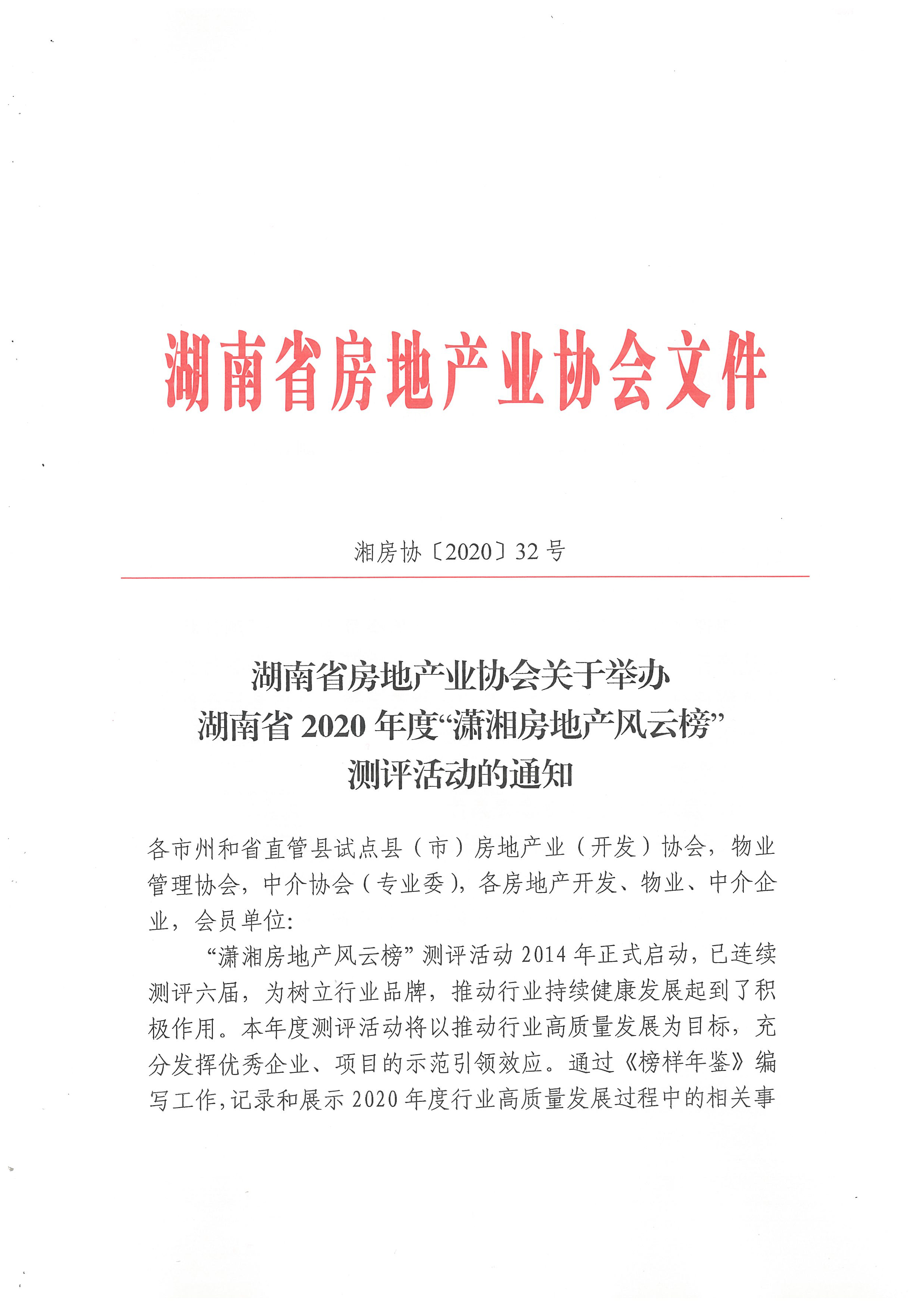 關(guān)于舉辦湖南省2020年度“瀟湘房地產(chǎn)風(fēng)云榜”測(cè)評(píng)活動(dòng)的通知