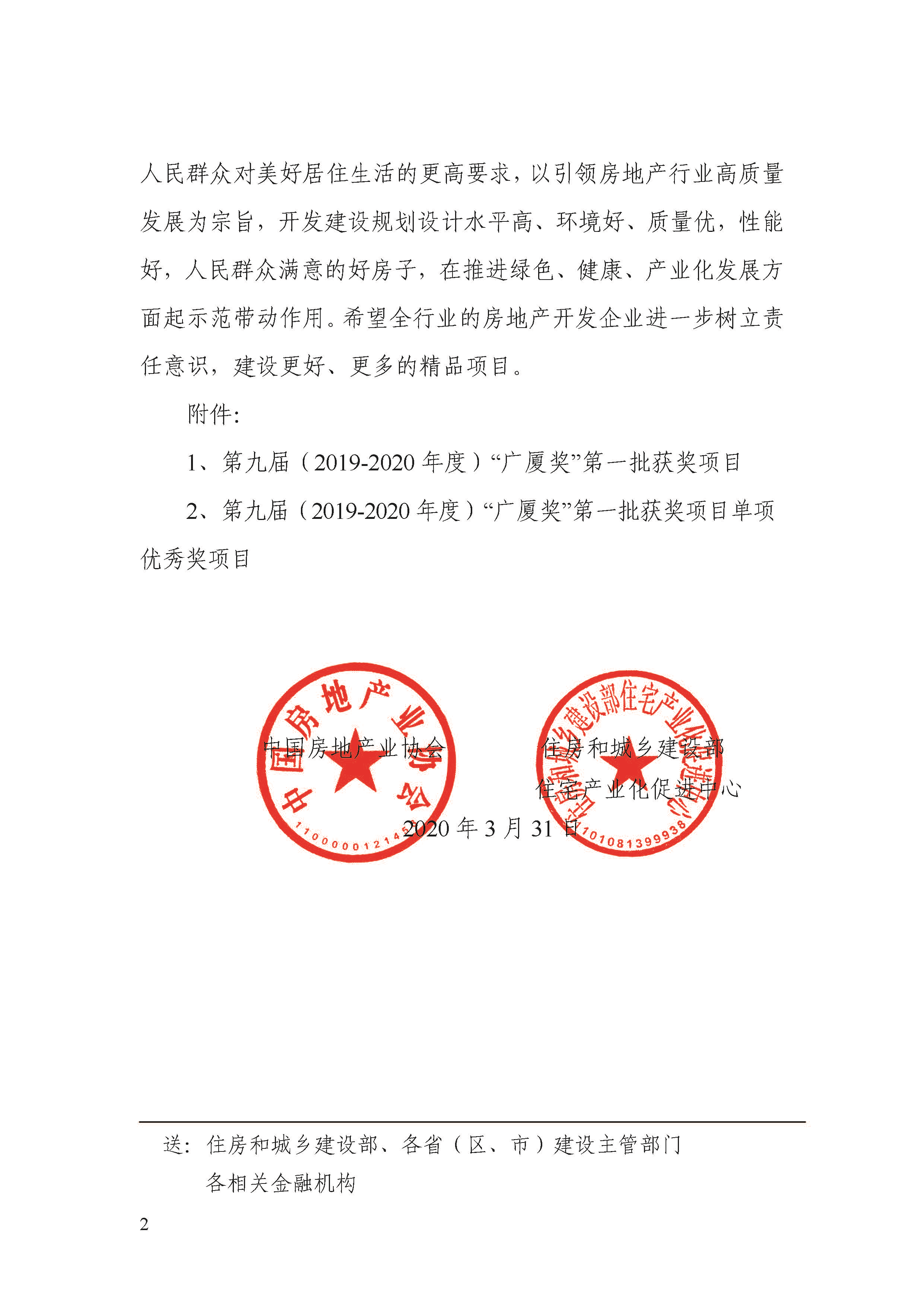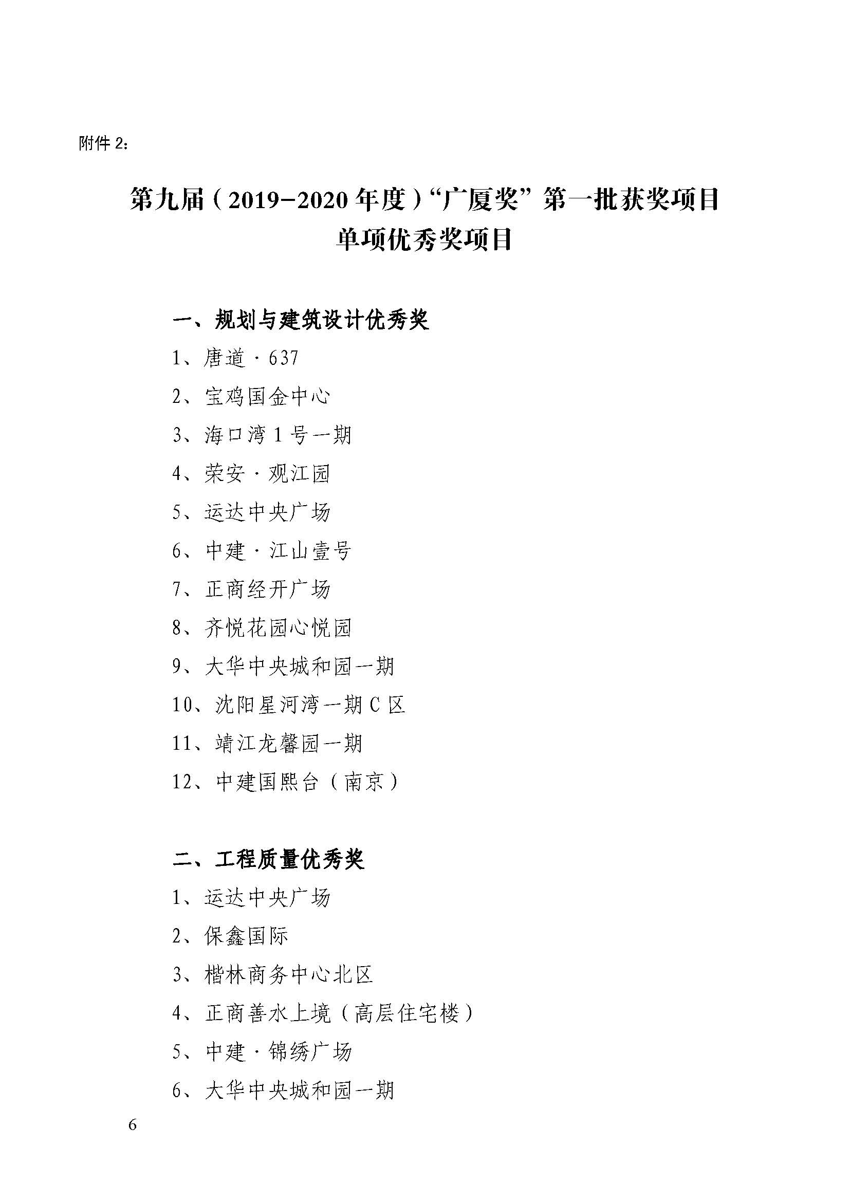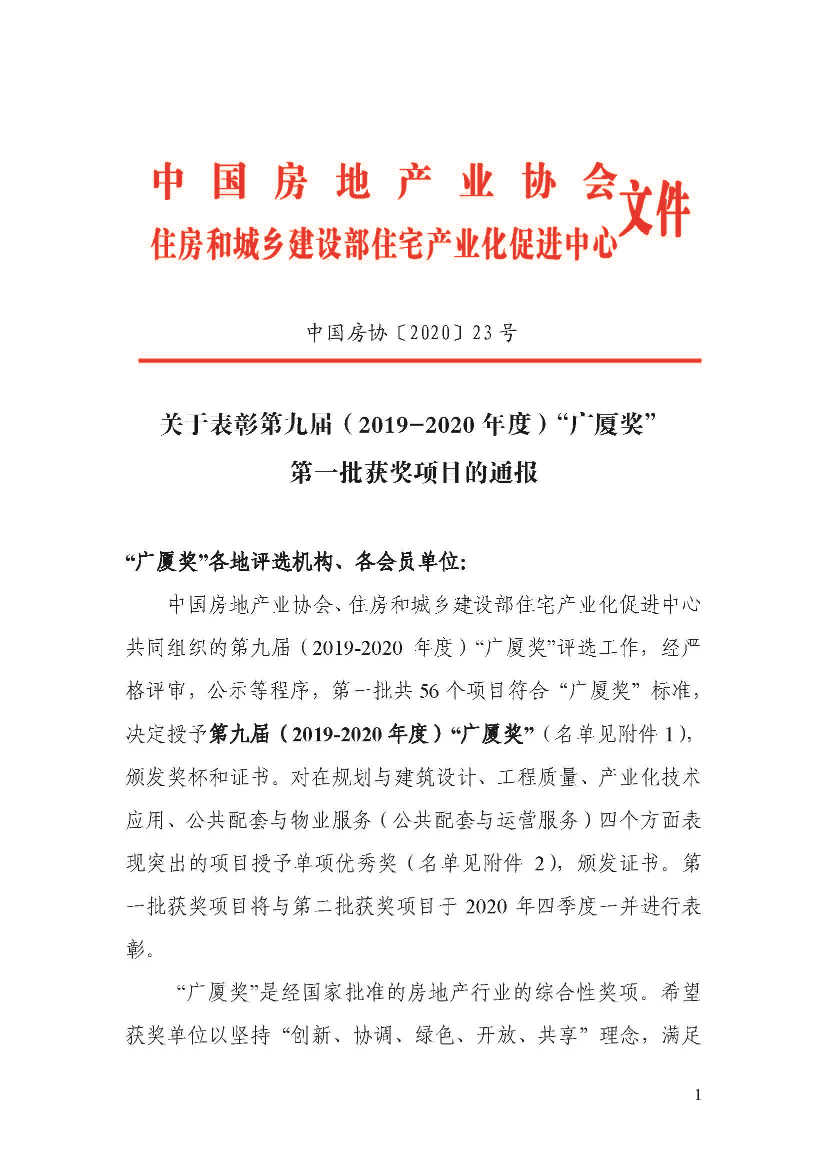 (附:關于表彰第九屆(2019—2020年度)“廣廈獎”第一批獲獎項目的通報)