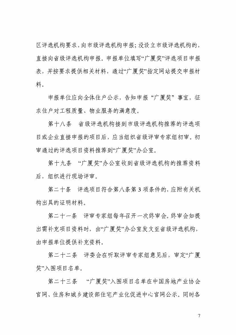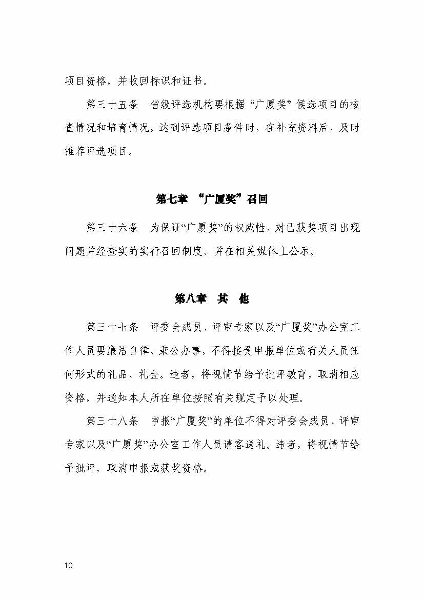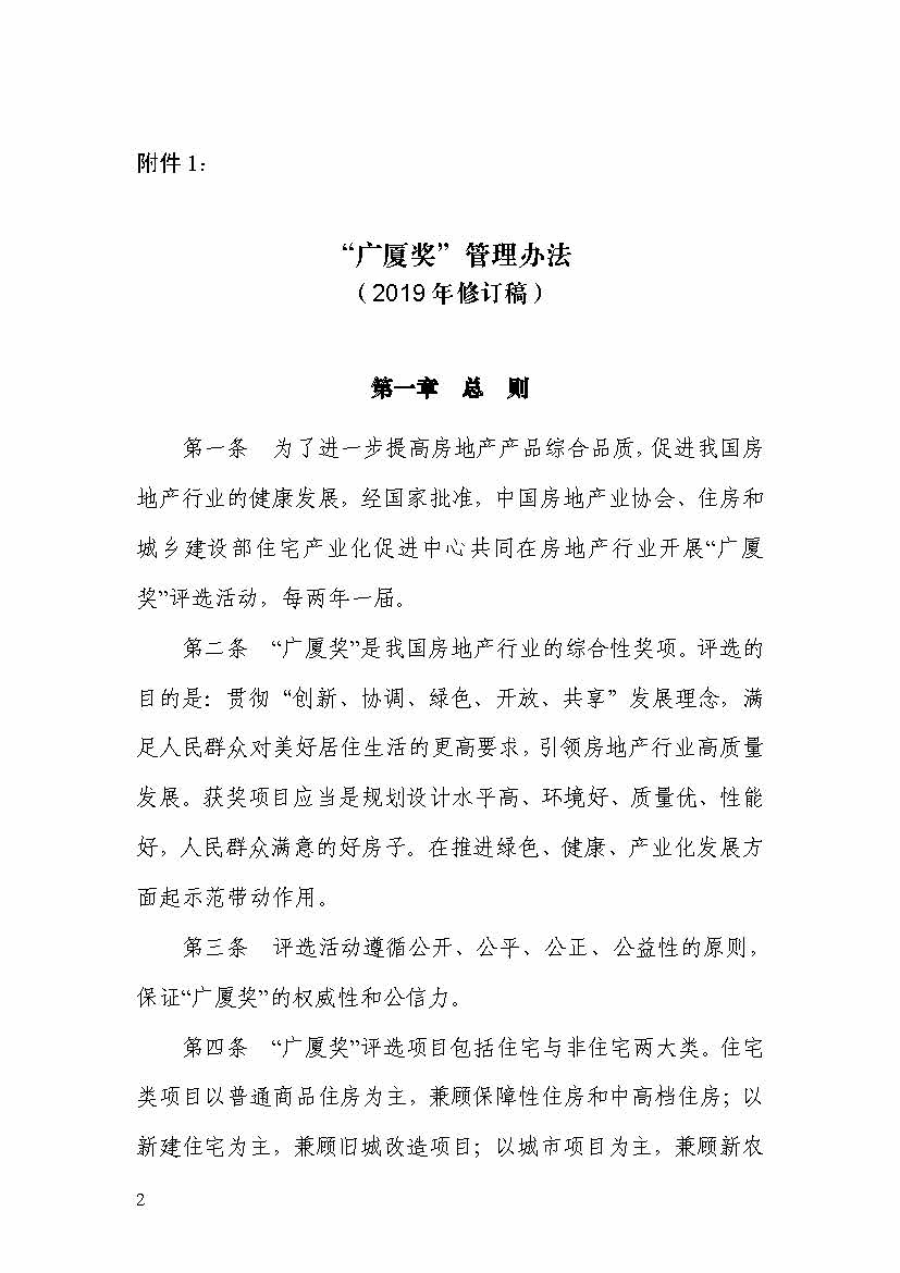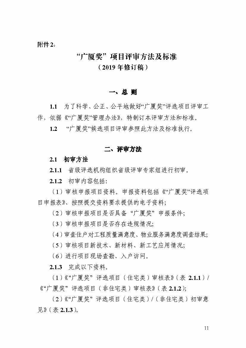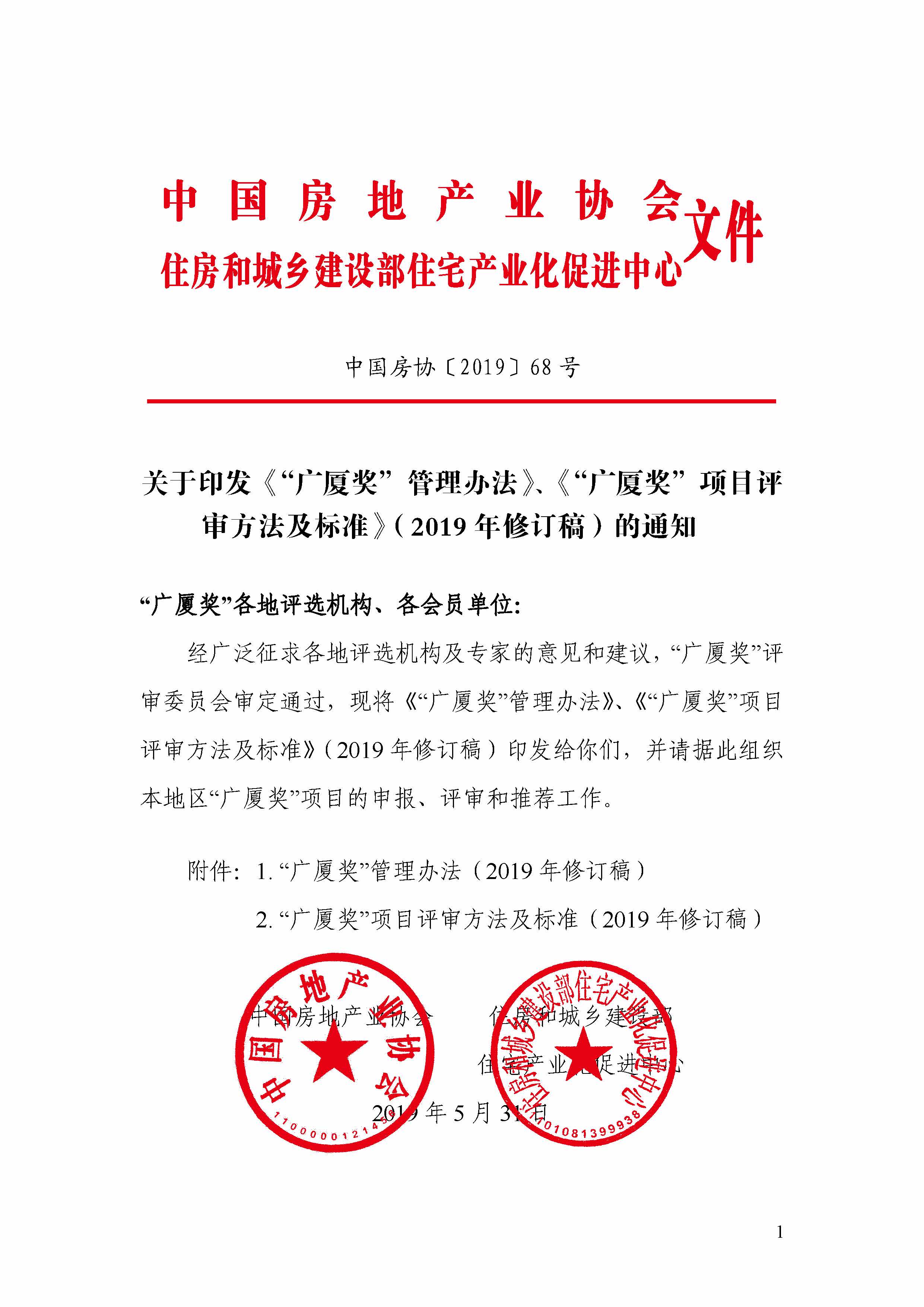 關(guān)于印發(fā)《“廣廈獎(jiǎng)”管理辦法》、《“廣廈獎(jiǎng)”項(xiàng)目評(píng)審方法及標(biāo)準(zhǔn)》(2019 年修訂稿)的通知