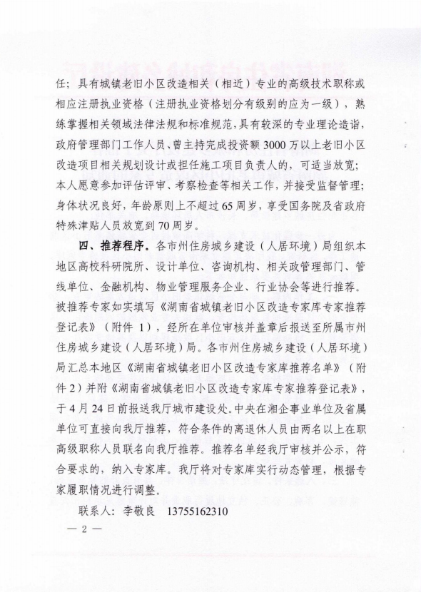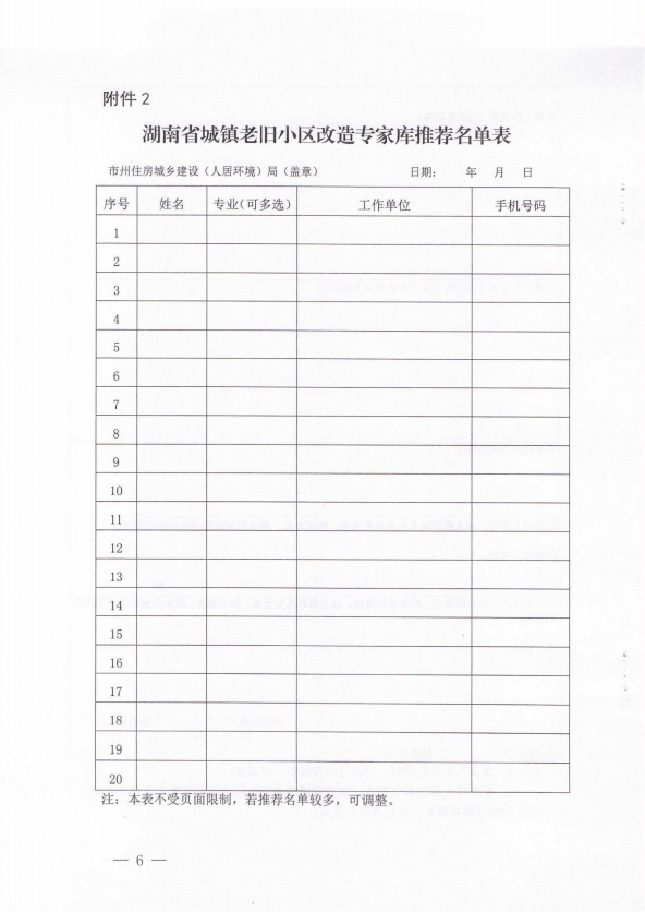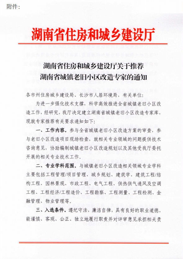附件:《湖南省住房和城鄉建設廳關于推薦湖南省城鎮老舊小區改造專家的通知》