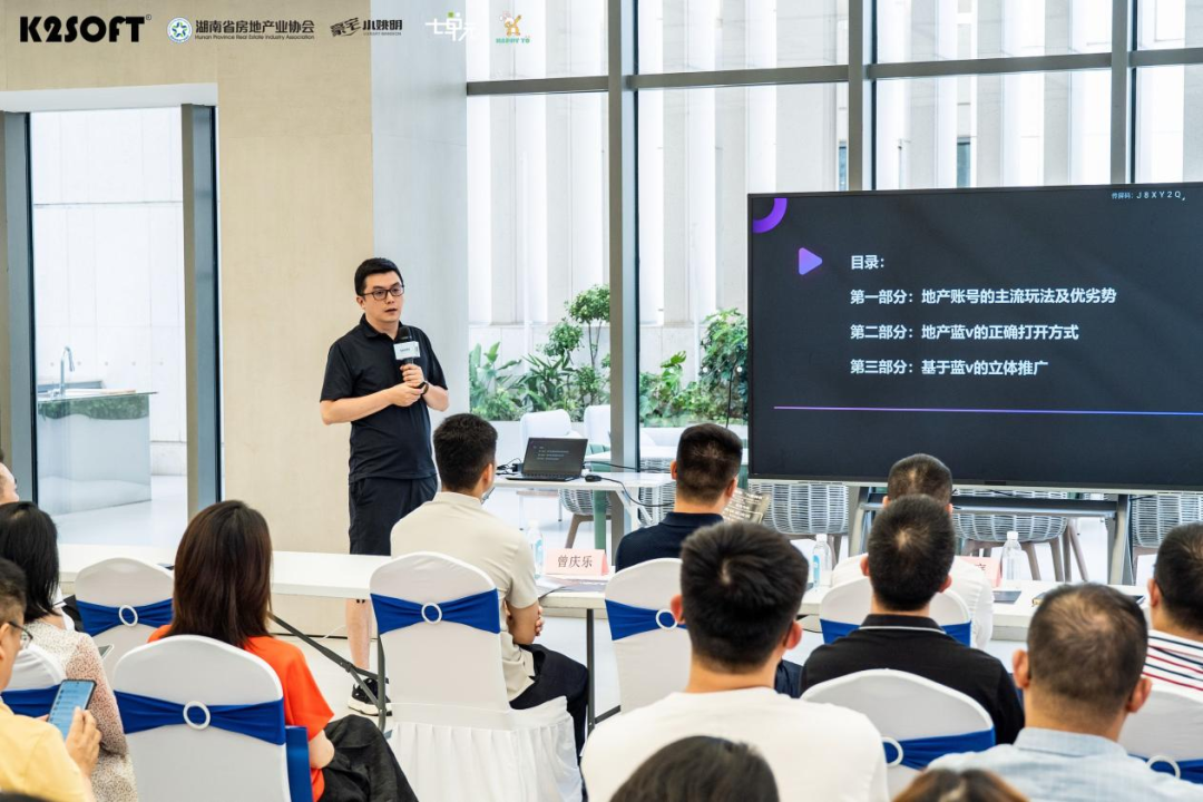 長沙七單元網(wǎng)絡(luò)科技有限公司總經(jīng)理雷影率先做了《藍(lán)V號“超跑”:如何一騎絕塵,領(lǐng)跑市場?》的主題分享,作為操盤過潤和濱江灣、旭輝鉑悅湘江、印湘江NEW288、招商臻境、IFS 國金公寓、嘉臣道等項(xiàng)目新媒體營銷的實(shí)踐者,在會上著重分享了如何在內(nèi)容為王的基礎(chǔ)上通過短視頻與直播精心打造企業(yè)藍(lán)V號實(shí)現(xiàn)線上營銷。