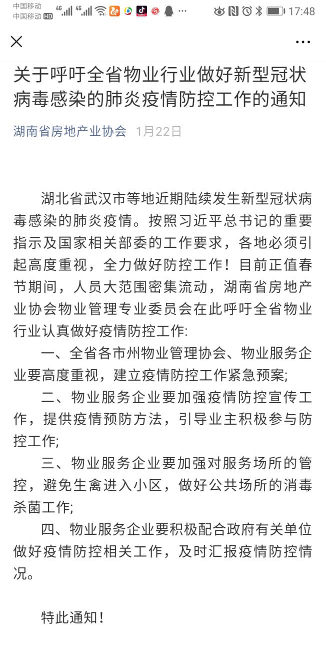 疫情就是命令,防控就是責(zé)任。肺炎疫情出現(xiàn)后,在國(guó)外與家人休年假的宋書記得知消息后第一時(shí)間通過網(wǎng)絡(luò)新聞了解了肺炎疫情概況,并迅速通過微信聯(lián)系了協(xié)會(huì)各部門負(fù)責(zé)人,針對(duì)疫情做出了應(yīng)急工作安排,當(dāng)天更是改簽了自己和家人回家的機(jī)票,提前取消了自己和家人的假期。1月26日,協(xié)會(huì)向全行業(yè)發(fā)布關(guān)于預(yù)防新型冠狀病毒感染肺炎疫情蔓延的倡議書,號(hào)召全行業(yè)和企業(yè)積極應(yīng)對(duì),高度重視科學(xué)理性做好防范措施,同心協(xié)力打贏疫情防控狙擊戰(zhàn)。前期重點(diǎn)對(duì)我省物業(yè)行業(yè)發(fā)出了呼吁,要求做好新型冠狀病毒感染的肺炎疫情防控工作,要求建立疫情防控工作緊急預(yù)案,加強(qiáng)疫情防控宣傳,引導(dǎo)業(yè)主積極參與防控工作,同時(shí)加強(qiáng)服務(wù)場(chǎng)所的管控,做好公共場(chǎng)所的消毒殺菌工作,并要積極配合政府有關(guān)單位做好疫情防控工作,及時(shí)匯報(bào)疫情情況。隨著疫情的迅速爆發(fā),防疫形勢(shì)愈加嚴(yán)峻,為認(rèn)真貫徹落實(shí)和加強(qiáng)行業(yè)疫情防控工作,回國(guó)后宋書記更是召集黨支部各支委和各部門負(fù)責(zé)人召開疫情防控緊急專項(xiàng)會(huì)議,結(jié)合協(xié)會(huì)工作職能和疫情形勢(shì)又對(duì)全省房地產(chǎn)業(yè)疫情防控工作進(jìn)行了具體安排和部署。